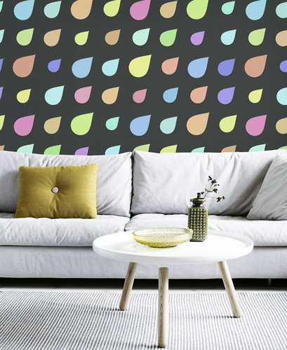 编辑点评:此处的墙壁设计采用了彩色雨点的创意,大小不一、颜色各异的雨点整齐排列,设计感扑面而来。配合下方素色的沙发衬托,更显得上方艳丽。