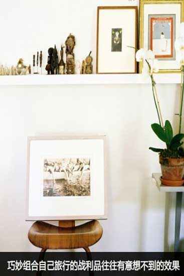 如果你是一个爱旅游的人,相信你从全国各地带回来的旅行纪念品能为你的墙壁添光添彩。带着地方特色的玩偶饰品很具有童趣和民族风,而摆放自己旅行中的摄影作品也别具一番味道。