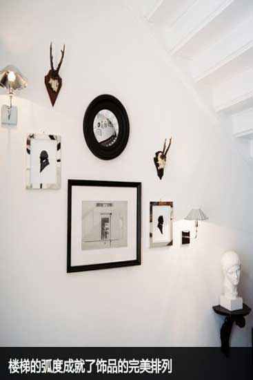 独特的鹿角、简约的版画、别具风格的烛台,和一个凸镜,这些都是主人的心爱收藏,此时它们完美地交融在了楼梯间的墙壁上。