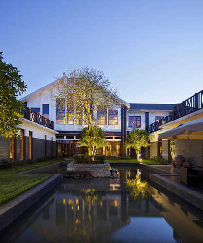 点评:本案注重内外相通融,美妙的水景中庭、亲近自然的阳光包房,与东方文化气质的室内风格融为一体,一个清幽静谧、精致细腻的静心之所由此诞生。