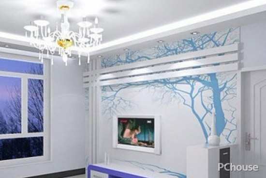这款电视背景墙着重展现客厅的雅致,蓝色背景配上白色的百合花,属于典型的地中海风格。神色的现代简约背景下,可以给人留下沉稳迷人的印象。