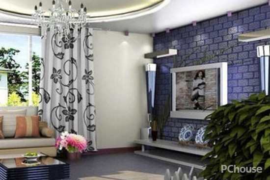 客厅的电视背景墙选用的是紫色墙纸,设计师称这样的设计主要是为了打造出客厅的神秘感,很受现代年轻人的欢迎。