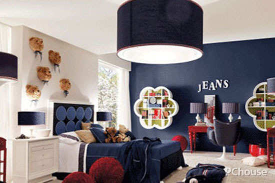 儿童房壁纸使用的时候一定要注意协调性,尤其是在色彩和图案的选择和搭配上,必须要遵循一定的原则,否则会很花很乱。多数家庭的儿童房间并不宽敞,所以图案的尺度也要适当,如果图形花样过大就会在视觉上造成紧迫感。壁纸适合使用在儿童房间的四面墙壁,但不宜选用在房顶,房顶不易铺装,同时花纹和色彩都可能造成压抑的情绪,对儿童心理和生理都会有影响。