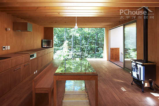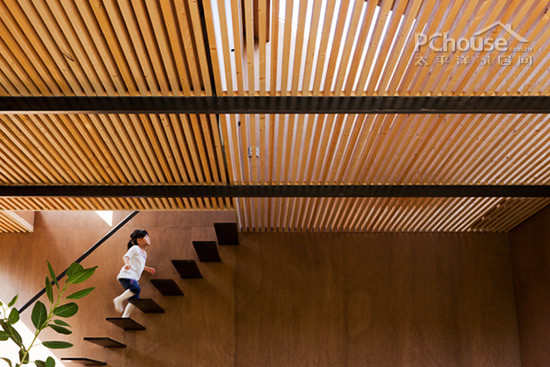 在长谷川豪的建筑作品里,我们还是能看到他对“木”的喜爱,无论是在钢结构上架木头的房子,还是采用木质天花板,又或是把从澳洲进口的木材做成缝隙有2cm的栅格地板,当成是一楼的天花板,这零零总总对木材的创意运用,是长谷川豪“比较得意”的突破,他称之为“这是我一贯的风格,木结构”。