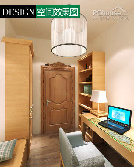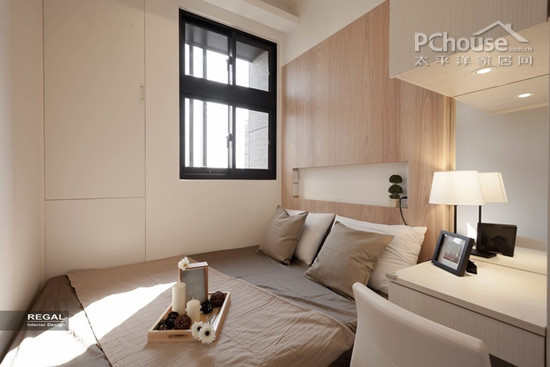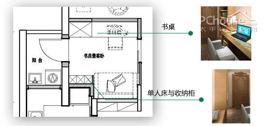 2、与书桌相对的另一面则规划成单人床,适合招待客人之用。