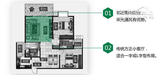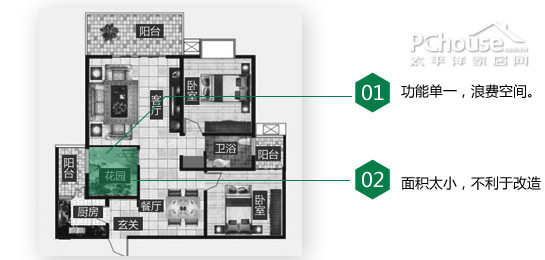 1、阳光花园占据了一间房的位置,功能与阳台无异,却没有发挥其他功能。