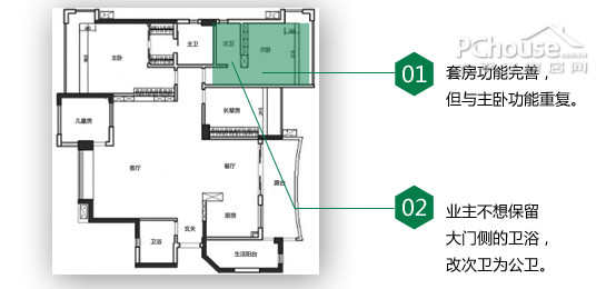 2、不希望厕所在大门旁,家有三个厕所,请帮忙创意发挥。