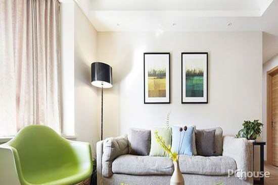 客厅整体是一个很惬意的氛围,简约又清新。墙面并不是纯白色的哦,仔细看才可以看得出来,是一个很浅的米色,这个色彩显得比较温馨。