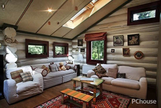除了做旧的沙发之外,纯木质打造的房间道出了房间主人对大自然风格的热爱。