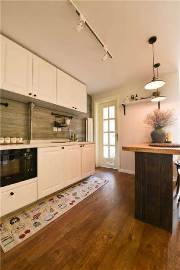 编辑点评:白色的一体式橱柜不仅使空间在理论上增大而且在视觉效果上也取到了相同的作用,让空间显得更大。