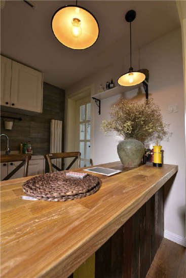 编辑点评:餐厅的灯用了复古的元素,吧台上的陶罐还有几株不知名的植物,让人眼前一亮。