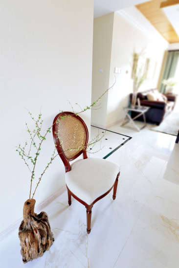 编辑点评:电视柜旁的饰品耐人寻味,充满趣味性,整体的视觉空间非常开阔。