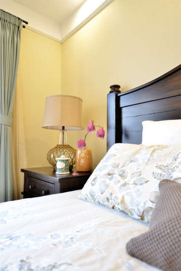 编辑点评:在卧室的设计中,设计者同样没有放过任何一个可以做文章的地方,当你清晨醒来,睁开眼就是令人心旷神怡的花朵,想来你这一整天必定很开心。