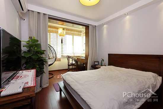 设计师点评:阳台和卧室打通,增加了卧室的空间,阳台区域兼做书房。