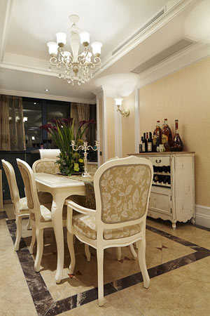 整个简欧式风格室内装潢设计效果图以整个设计以深色咖啡色为主色调,时尚又不失高贵优雅,同时又充满温暖迷人的气息!绿色的恬静、蓝色的摩登、棕色的温暖、紫色的优雅,犹如女人的别样气质完全呈现在你面前!