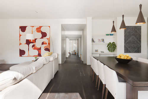 编辑点评:L型沙发在固定客厅范围的同时,还有节省空间,延展空间视觉效果的功效。而圆形的吊椅设计不仅能挑高空间,点亮空间一角,还有柔化空间的功效。
