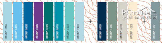 故事性的水生物图案:水母、贝壳、鱼鳞、珊瑚、甲壳类。大理石花纹、波浪、振波、闪烁的微光和巴洛克式的阿拉伯花纹。