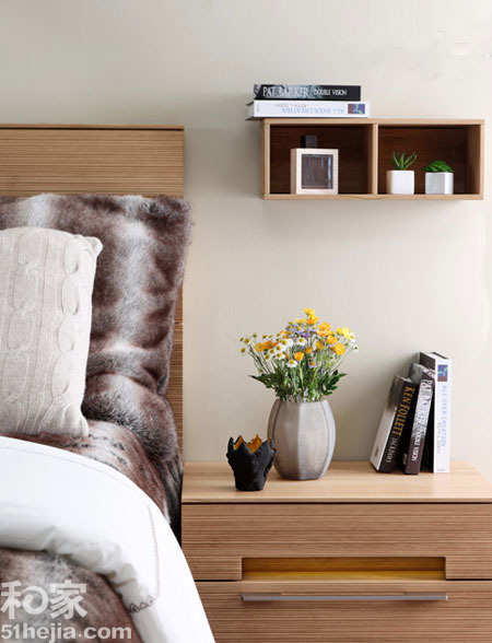 床头简约收纳--床头的书柜一定要小,一定要简洁。不然会让你的卧室看起来乱七八糟,带有储物空间的床头书柜可是十分讨巧的。