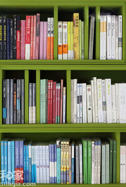 色彩分类收纳--在我们收纳书籍的时候有没有想过怎么放书才会好看?如果心中有着无限的创意话,尝试按着书脊的颜色来分配吧,远远地看上去好像一道彩虹别有一番趣味。