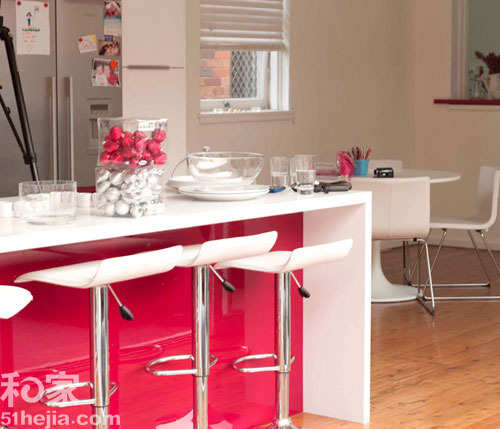 小巧的厨柜延伸台面是一家三口的就餐场所,但除了就餐它还可以兼具其他功能。操作台上无处容身的锅碗瓢盆都可以借餐桌临时一用。有了功能强大的延展台面充当临时操作区,接待再多的客人也不怕。放置一顿丰盛的餐点,这里就成为一个充满情趣的餐台。