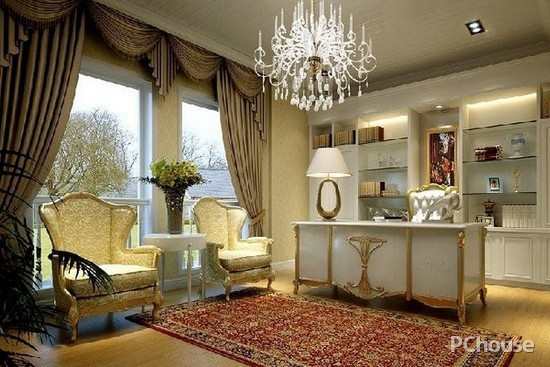 选择一张欧式复古花纹的地毯与之相搭配,既能够使书房更加典雅,又能够很好地保护地板不被磨损。