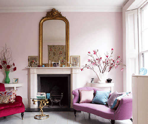 甜美纯真的粉色墙面,显得客厅格调雅致。淡紫色的沙发增添浪漫的情怀。花瓶中的梅花,点缀了整体的氛围。这个客厅呈现了罗曼蒂克的浪漫的氛围。