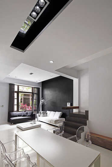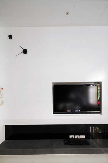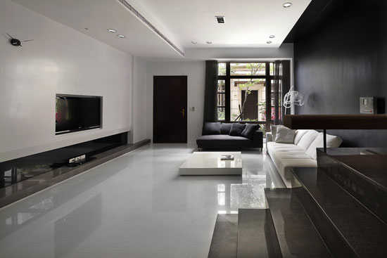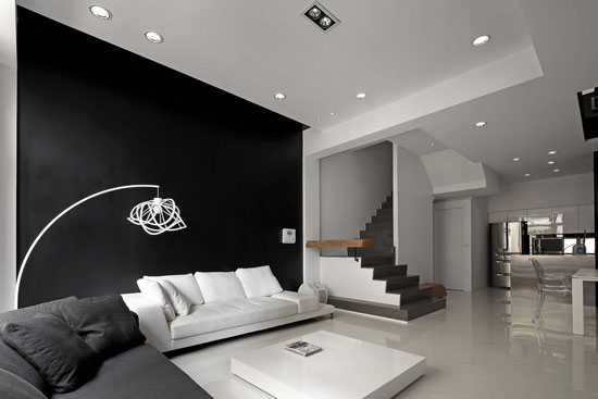 编辑点评:大片的黑白两色壁面,冷调的室内空间氛围开门立现。