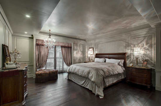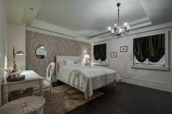 编辑点评:主卧房色调温润且稳重大方,弥漫着优雅的气质,并围塑一贯的新古典设计主轴。