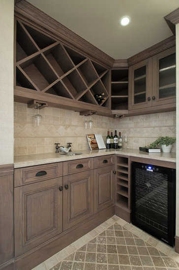 编辑点评:仿古色的磁砖、把手搭配上洗手台机能,完备酒窖功能性规划。