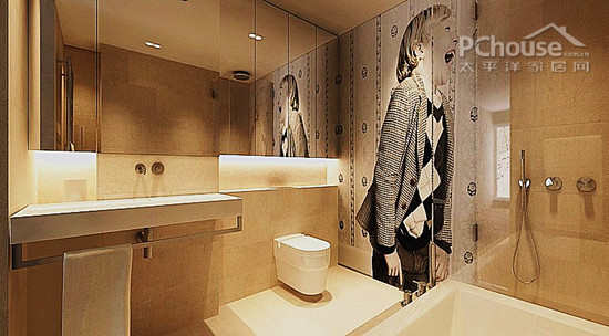 编辑点评:浴室给这个大幅的艺术壁画一个美好的舞台。镜子又增强了浴室的空间感。壁画的设计大胆而率真!