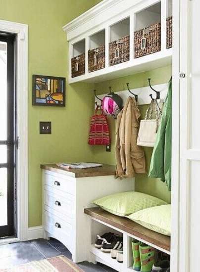论收纳,第一就是进门处的玄关。虽然它的空间不大,却是人们对家的第一印象,毕竟我们都希望一推开门,迎接自己的是一室的整洁明亮。然而不少人在装修时往往会忽略对玄关的设计,从而造成进门时鞋、物无处安置的不便,花一些,在相同的空间采用我们最优化布局,给你一个崭新的玄关。