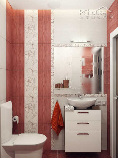 编辑点评:一致整齐的印花瓷砖设计可以给沐浴过程增添更多的视觉享受,同时也让整个小浴室看起来没那么单调!