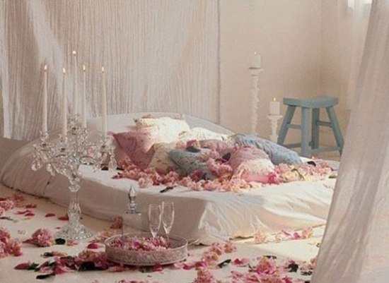 没有地台,干净的地面也挺不错,新婚的卧室也不一定要是大红色的才够喜庆,白色搭配上粉嫩粉嫩的花瓣以及浪漫的烛光,这样的设计反而更能挑逗人的神经。