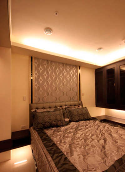 嵌以黑镜的床头画框,藉由壁纸跳色确立私领域主视觉点。