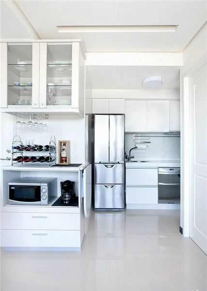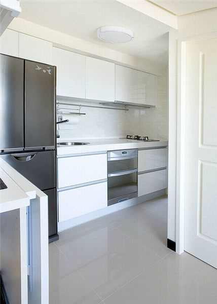 运用系统家俱将冰箱与流理台整合为同一墙面,让空间视线更加清爽。