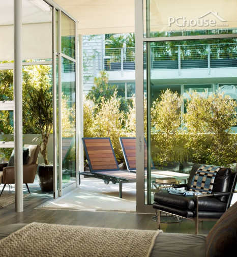编辑点评:透明的玻璃棚,简单实用,小露台上面放上设计略带古典气息木桌,这里最适合闲坐赏茗赏天空美景不过了。