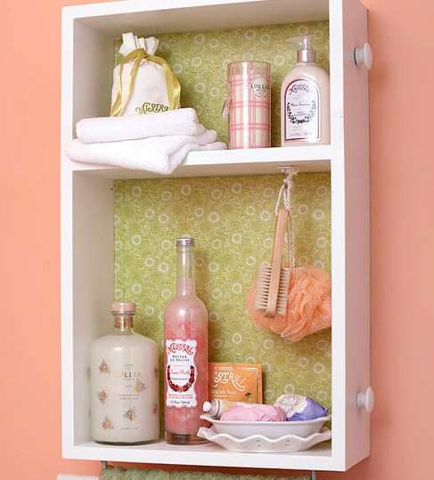 在卫浴间的一角,安装上一个小小的置物架,虽然虽然只有窄窄的一个小空间,但巧妙地分了两个隔层,将日常所需用品合理收纳其中。
