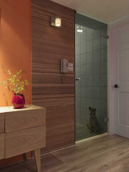 编辑点评:利用灰玻门片保留视线穿透,同时巧妙阻绝油烟溢散问题。