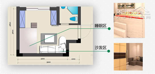 2、将卧室功能改变后,无形中形成了隐形分区,形成了两个层次。