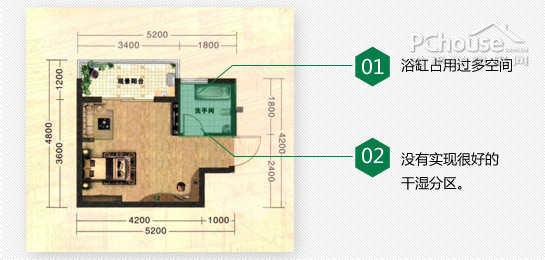 2、浴缸占用这多的空间,而且没有实现很好的干湿分区。