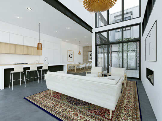 宛如空间艺术的雕塑师,林厚进设计总监将此四层楼基地,大刀阔斧凿开一方天井,长方结构的建筑体。