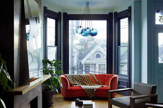 编辑点评:垂挂式高脚台灯给空间带来活泼性和动感的同时,还有挑高空间的视觉效果,和宽长玻璃窗一起增强空间亮度。宽长的玻璃窗打开了空间的视野,也让这以白色作为主色调的空间看起来更加宽敞明亮。