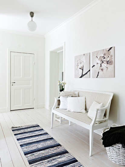 编辑点评:玄关作为步入家门的必要过渡空间,是给主人和客人的第一印象,在此空白的墙上挂上一幅画面简单的画,可以体现主人的喜好。同时,在墙角处摆放一张长椅,其功能显而易见,又使得空间在布局上更为紧凑。
