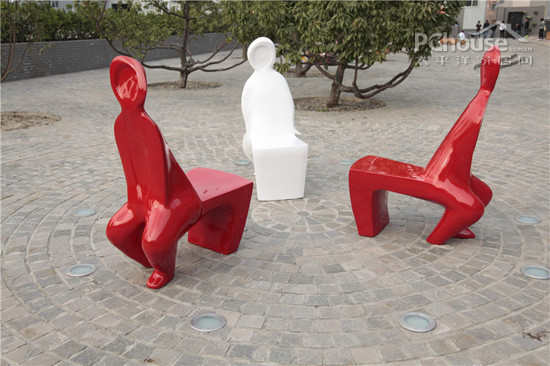 创意奇趣:这是一套主要用于咖啡店的户外座椅,这套作品既是景观又是座椅,不锈钢敲或玻璃钢材质,表面喷漆,一套为一个桌子和三个椅子组合而成。椅子是人坐在凳子上的形态,当人坐下时是与椅背的人背相背而坐。而最有趣的是,当咖啡厅没有人或者打烊的时候,咖啡店里依然呈现的是熙攘热闹的场景,几组椅子依旧延续白天的生活形态。