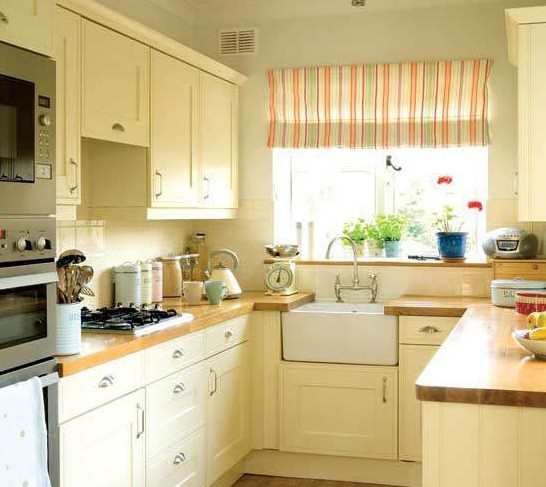 朴实的田园风格小厨房装修搭配大理石的台面,内嵌式的油烟机设计,让你对小厨房产生幻想,欧式的橱柜门板设计让小厨房装修具有田园般的浪漫风情,特色的自制转角拱门型收纳,让烹饪变的自由自在。