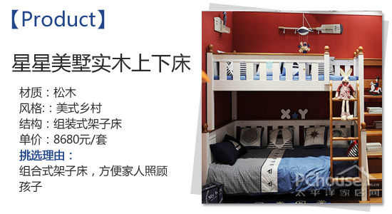 星星美墅环保实木上下床:南美樱桃松木主材,美式乡村风格家具,组装式架子床,8680元/套。【点击了解产品详情>> 】