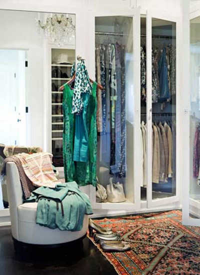 编辑点评:比弗利山穿衣间的玻璃橱柜使试衣十分清爽。设计师喜欢这种黑色檀木地板,因为这种颜色属于底色,看着整洁,时尚。土耳其地毯让人第一感觉就是波西米亚风。