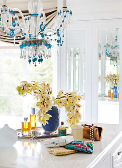 编辑点评:19世纪的法国枝形吊灯给加州比弗利山别墅的穿衣间带来一股蓝色的冲击。