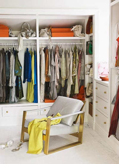 编辑点评:到手的房子有时会形成若干凹进或凸出的区域,甚至三角形的角落,把这些内部装修的困难区域改置成衣帽间,往往能将缺憾变成优势,成为装修设计的点睛之作。不同质料、款型的服饰以悬挂为主,方便纠结的主人选择。为了彰显个性,傲娇的主人还可以选用墙体彩绘和用色大胆的换鞋凳。