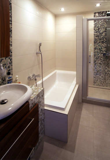 编辑点评:将浴池安置于角落,同时旁边紧挨着淋浴间,此设计又是一充分利用空间的设计,也为主人提供了生活上的更多选择。
